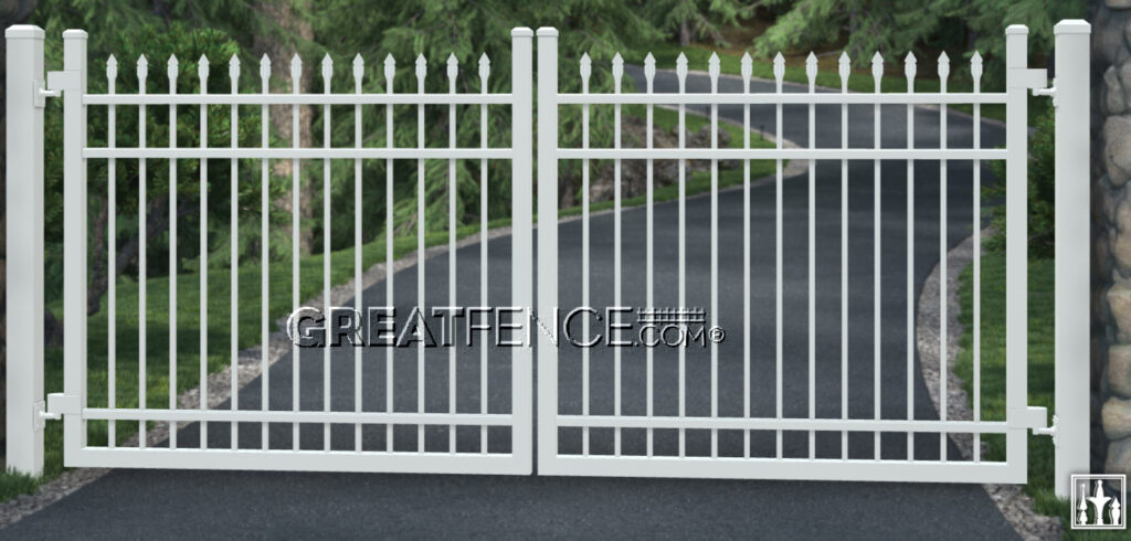 Pick your Grade → Opening Width → Height. We’ll show the typical total weight for the full double-drive gate (both leaves combined) and the per-leaf value. Note: 3rd party gate automation is only available for GreatFence.com Commercial and Industrial gates. It's o.k. to mix and match residential aluminum fencing and posts with commercial and/or industrial aluminum driveway gates and posts. This is common for homeowners with: a) large driveways or b) driveways where automation is needed.